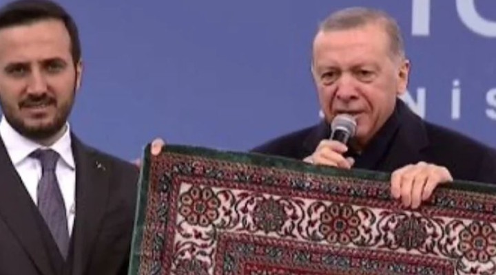 Erdo?an konu?mas?n?n sonunda kendisine hediye edilen seccadeyi göstererek, “Bu seccade ayakkab?larla basmak için de?il ha. ?n?allah 15 May?s'ta ?ükür namaz?n? bu seccadede k?labiliriz ” ifadelerini kulland?.
