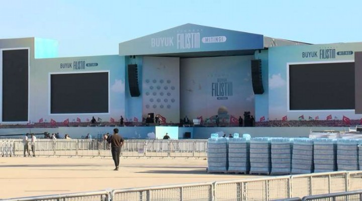 Ayr?ca alana platform kurulumlar? tamamland?. Sahnedeki dev ekranlar?n yan? s?ra alan içerisinde çok say?da ekran konuldu. Bas?n mensuplar? içinde yay?n yapabilmeleri için platform haz?rland?.