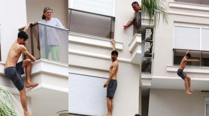 Balkon demirlerine ç?kan, zaman zaman a?a?? sarkan E.Ç, özel harekat polislerinin dairenin kap?s?n? k?rarak içeri girmesi üzerine balkondan sarkarak birinci kat?n penceresine indi.