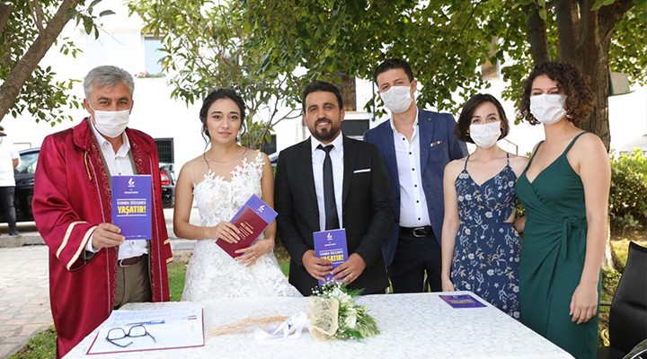 Güzelbahçe Belediyesi, yeni evlenen çiftlere evlilik cüzdan? ile beraber ?stanbul Sözle?mesi kitapç??? vermeye ba?lad?.