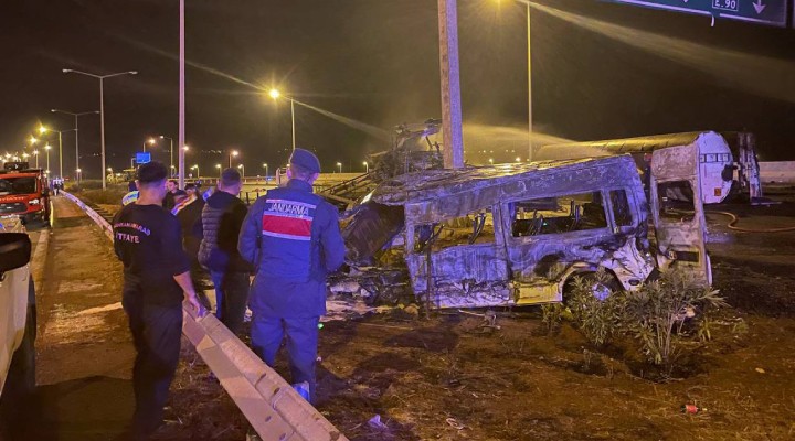 Ard?ndan yol yap?m çal??mas? için bölgede bulunan kepçeye ve asfalt dökme arac?na çarpan TIR, devrilerek alev ald?. Asfaltlama arac? ile minibüsün de alev ald??? kazada 3 ki?i ya?am?n? yitirdi, 11 ki?i yaraland?.
