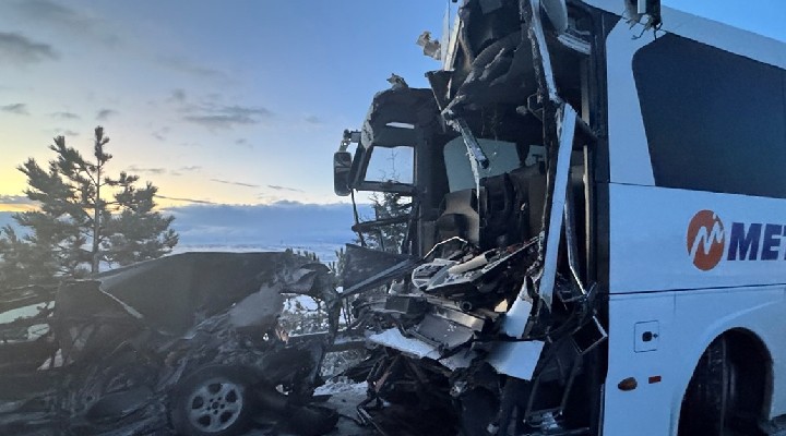 Ankara yönüne giden ve sürücüsü ile plakas? ö?renilemeyen bir yolcu otobüsü, ilçenin Topdere mevkiinde bir çekici ve otomobille çarp??t?.