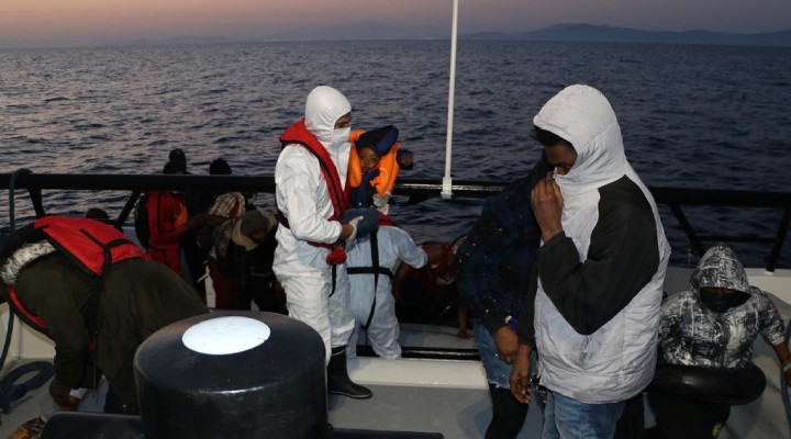?zmir'in Foça ilçesinde, Yunanistan unsurlar?nca Türk kara sular?na geri itilen 32 kaçak göçmen, Sahil Güvenlik Komutanl??? taraf?ndan kurtar?ld?.