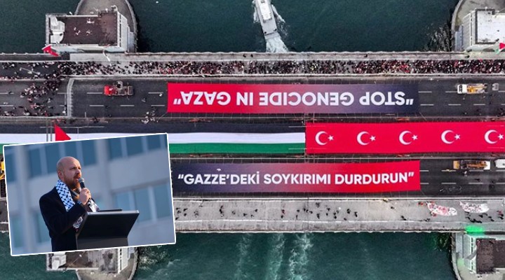 ?stanbul'da yeni y?l?n ilk gününde 400'e sivil toplum kurulu?unun kat?l?m?yla Filistin için "Dün Ayasofya, Bugün Emevi, Yar?n Aksa" yürüyü?ü düzenlendi. Ayasofya ve farkl? camilerde toplanan gruplar, kortejle ‘miting alan? olmayan’ Galata Köprüsü'ne yürüdü. AK Partili Cumhurba?kan? Erdo?an’?n o?lu, ?lim Yayma Vakf? Mütevelli Heyeti Ba?kan? ve TÜGVA Yüksek ?sti?are Kurulu Üyesi Bilal Erdo?an, Gazze'deki soyk?r?m? lanetleyip "Kimse sanmas?n ki Türkiye uyuyor. Öfkemizle protestolar?m?zla dualar?m?zla buraday?z. Gazze yaln?z de?il, Filistin kimsesiz de?il, Suriye tek ba??na de?il. Biz var?z, Türkiye var" dedi.