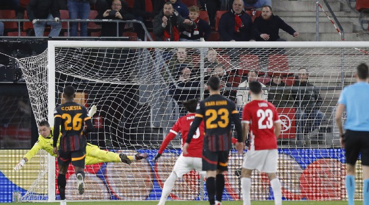 UEFA Avrupa Ligi son 16 play-off turu maç?nda Hollanda temsilcisi AZ Alkmaar'a konuk olan Galatasaray, kar??la?madan 4-1 ma?lup ayr?ld?. Maç?n 13. dakikas?nda Sven Mijnans'?n serbest vuru?tan kaydetti?i golle yenik duruma dü?en Galatasaray, 20. dakikada Roland Sallai ile beraberli?i yakalad?. Troy Parrott'?n 37. dakikada penalt?dan kaydetti?i gol, ilk yar?n?n sonucunu belirledi.