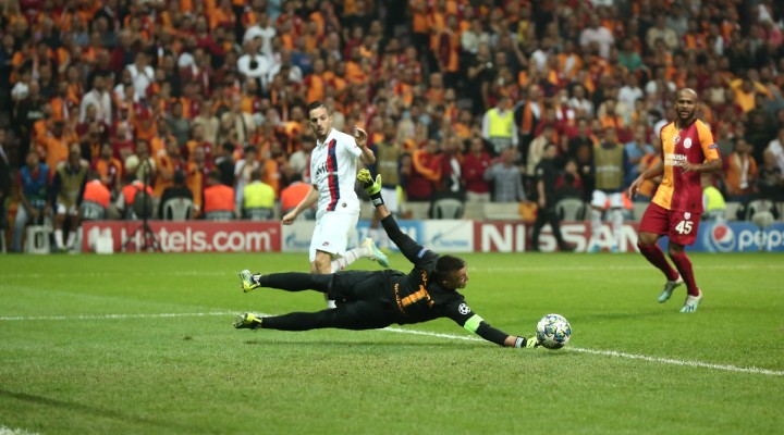 11'inci dakikada sa? kanattan geli?en PSG ata??nda, Meunier'in içeri çevirdi?i topta Di Maria bekletmeden vurdu. Muslera topu kornere tokatlad?.