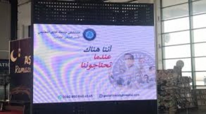 Yeni görüntünün adresi Ankara ?ehirleraras? Otobüs Terminali (A?T?).... Peron kat?ndaki dijital ekrana Gazi Üniversitesi taraf?ndan Arapça ilan verildi.
