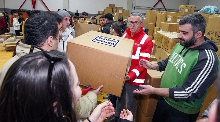 ESBA? Spor Salonu’nda yürütülen kampanyay? organize eden Gaziemir Belediye Ba?kan? Halil Arda, “Yaralar?m?z? sarmak için deprem felaketinin ilk gününden bu yana dayan??ma içerisindeyiz. 4 günde toplad???m?z ba???lar?n bir k?sm?n? 6 t?ra ve 2 kamyonete yükleyerek do?rudan deprem bölgesine gönderdik. 35 kamyon e?yan?n da depremzedelere ula?t?r?lmas? için Fuar ?zmir’e ta??d?k. Kampanyam?za yo?un destekleriyle katk? koyan ve bu e?yalar? paketleyen, araçlara yükleyen gönüllü gençlerime te?ekkür ediyorum. Sizlerle gurur duyuyorum, iyi ki vars?n?z” diye konu?tu.