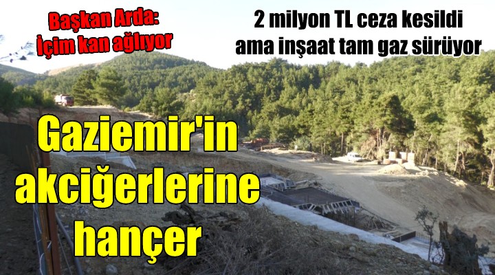 SONKALE?ZM?R- Gaziemir'in Ye?il Mahallesi'nde, k?z?lçam ve zeytin a?açlar?yla kapl? yamaça in?a edilen MyVia Country projesi h?zla sürüyor. Ormanl?k bölgeye 215 daireden olu?an lüks konutlar yapan Gözde Grup'a "projeye uygun olmayan imalatlar?" nedeniyle Gaziemir Belediyesi Encümeni taraf?ndan 2 milyon TL para cezas? kesildi.