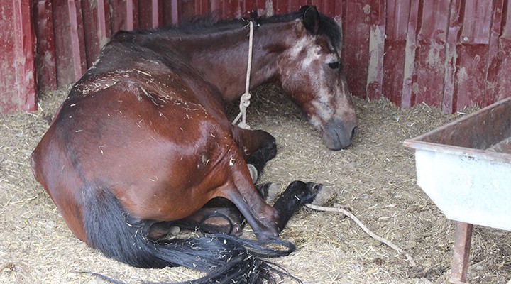 Ata Hera koyduklar?n? belirten Çak?r, "Zab?ta ekiplerinden rica ettik, yaral? halde bulundu?u gece saat 01.30 civar?nda EFODER’in de katk?lar? ile buraya getirdik. Hemen tedavilerine ba?lad?k. Ön ayaklar? anomalik, do?u?tan bilekten k?vr?k durumda. Hera’n?n üzerindeki izlerden, bir at arabas?na ba?lanarak kullan?ld???n? dü?ünüyoruz. O haliyle araba çekmi?. Gebelikten kaynakl? a??rl??? artt??? için ?u anda uzun süre ayakta duram?yor. On dakika aya?a kalk?yor, sonra dinleniyor. Bebe?i do?ar ve sa?l?kl? olursa uzun süreli ayakta durabilecek. Yap?labilecek her ?eyi yapt?k. Hem anomalik durumu hem de ya?? itibari ile bundan öteye gidebilece?i bir durum yok" dedi.