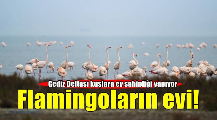 Türkiye'nin önemli sulak alanlar?ndan Gediz Deltas?, birçok ku? ile canl? türüne ev sahipli?i yap?yor. Flamingolar, ?zmir Körfezi'nin bat?s?nda, Gediz Nehri'nin denizle bulu?tu?u alandaki deltan?n önde gelen ku? türleri aras?nda yer al?yor.