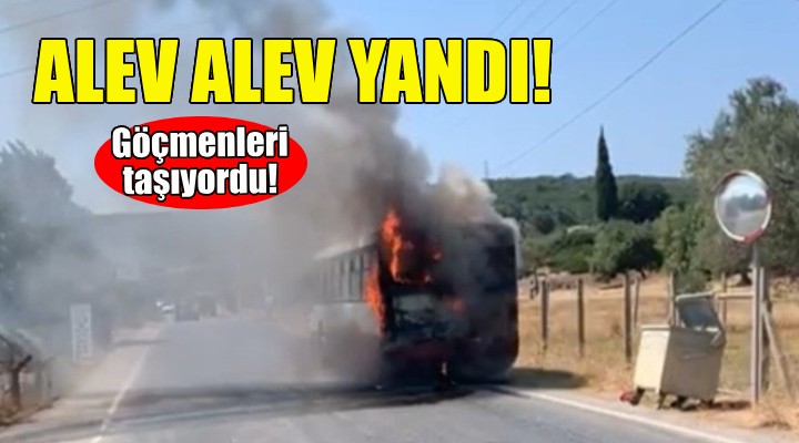 ?Seferihisar ilçesinde bugün Sahil Güvenlik ekipleri taraf?ndan yurt d???na ç?kmak isteyen 31 kaçak göçmen yakaland?. Kaçak göçmenler, Seferihisar'dan Urla ilçesindeki toplanma merkezine götürülmek üzere belediye otobüsüne bindirildi. Seyir halindeki plakas? ö?renilemeyen belediye otobüsü saat 14.30 s?ralar?nda Urla ilçesi Ovac?k Mahallesi'nde motor k?sm?ndan alev ald?.