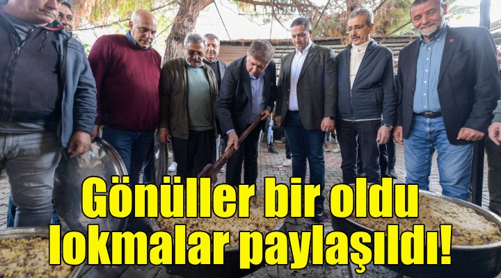 ?zmir Büyük?ehir Belediye Ba?kan? Dr. Cemil Tugay konu?mas?nda birlik ve beraberlik vurgusu yaparak, “Sevgili canlar hepinizi sayg? ve sevgiyle selaml?yorum. Bugün bu güzel ortama beni de davet ettiniz, te?ekkür ederim. Bu güzel gelene?i ya?atan, bu lokman?n haz?rlanmas?nda emek harcayan, bu lokmay? payla?an herkese te?ekkürler. Bugün burada bu hay?r ve iyilik ortam?nda darda olan insanlar?m?z için, ?ehrimiz, ülkemiz için dua ediyoruz. Bize de?i?ik ?ekillerle zulmeden, haks?zl?klara, adaletsizliklere neden olanlara kar?? bu birlik, beraberlikle dua eden herkese te?ekkür ederim. ?yi ki vars?n?z. Bu birli?e, beraberli?e ihtiyac?m?z var. ?ehrimizde, ülkemizde iyiliklerin güzelliklerin artmas? için çal??maya hepimizin ihtiyac? var. ?n?allah önümüzdeki y?llar evlatlar?m?z için bize ya?at?lan kötü günlerden uzak güzel günlere vesile olsun. Allah lokman?z? kabul etsin” ifadelerini kulland?.