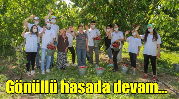 ?zmir Büyük?ehir Belediye Ba?kan? Tunç Soyer’in “Üreticinin ürünü dal?nda kalmas?n” diyerek ba?latt??? meyve hasad? sürüyor. Gönüllüler her gün 18 mahalledeki 46 kiraz bahçesinde hasada kat?l?yor. Korona günlerinde ürünü toplamakta zorlanan üreticiler gördü?ü destekten memnun. Hasada kat?lan gönüllüler ise dayan??maya kat?lmaktan ve üreticilerle kurduklar? s?cak ili?kilerden duyduklar? mutlulu?u ifade ediyor.