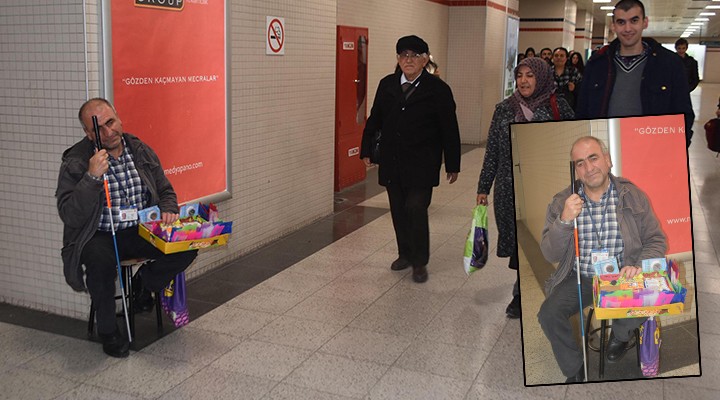 Karaba?lar'da ya?ayan görme engelli U?ur Kurumaz, enerjisi ve verdi?i hayat mücadelesiyle herkesin takdirini topluyor. Geçen ekim ay?nda 9 y?ld?r kanser hastas? olan e?ini kaybeden Kurumaz, her gün Fahrettin Altay metro istasyonunda kartl?k, süzgeç ve mendil satarak geçimini sa?l?yor. Zaman?n?n ço?unlu?unu sat?? yaparak geçiren Kurumaz, "?zmir halk? engellilere kar?? çok duyarl?. Allah bin kere onlardan raz? olsun. Her birine ayr? ayr? dua ediyorum. Kart k?l?f?, mendil ve çay süzgeçleri sat?yorum. Ben hayatta tek kald?m ama enerjimi kaybetmedim. Bütün kalbimle vatan?ma milletime hizmet etmek istiyorum. Bütün dualar?m insanl??a. Allah gözlerimizin nurunu korusun ki karanl?klara, ç?kmazlara dü?ürmesin. Ben hem gözlerimi hem e?imi kaybettim ama kaybetti?im göz nurumu ?imdi ?zmir'e serpi?tiriyorum" diye konu?tu.