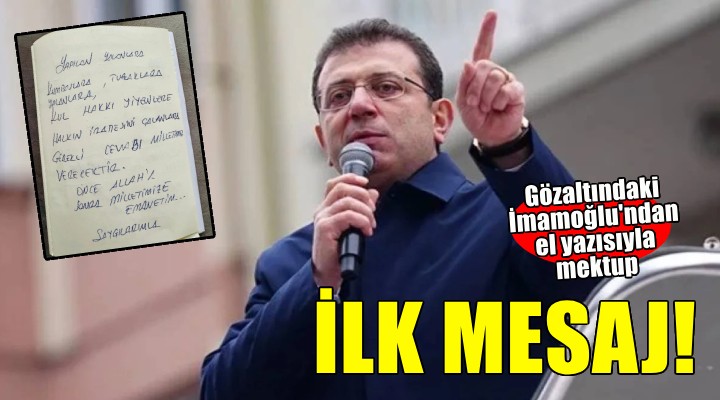 Sabah saatlerinde evinde arama yap?larak gözalt?na al?nan ?stanbul büyük?ehir Belediye Ba?kan? Ekrem ?mamo?lu'ndan ilk mesaj geldi. ?mamo?lu'nun not ka??d?na yazd??? mesaj? X hesab?ndan payla??ld?.