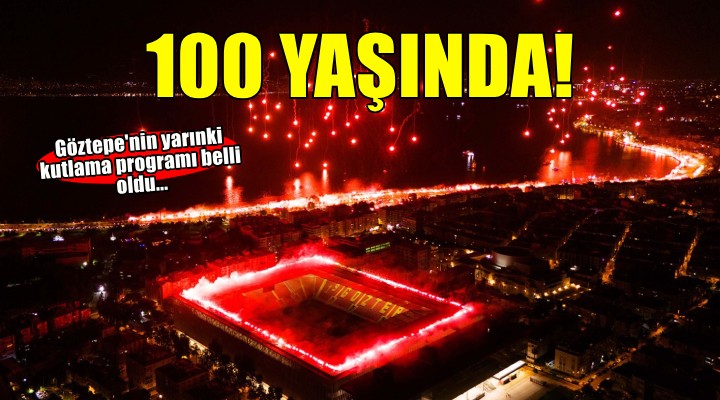 Temelleri 14 Haziran 1925'te at?lan sar?-k?rm?z?l? kulüp, 100'üncü y?l?nda tarihine yak???r bir kutlama yapacak. Senelerdir her 14 Haziran'da Göztepe Sahil Bulvar?'nda müthi? bir me?ale ?ov yapan taraftarlar, geceyi yine görsel ?ölenle ayd?nlatacak. Göztepe'nin 100'üncü y?l ?ölenine kulübün organize etti?i ???k ve me?ale ?ovlar? da renk katacak. Sar?-k?rm?z?l? yönetim, Göztepe'nin her bran?taki sporcular? ve protokol, kutlamalara saat 19.25'te Üçkuyular ?skele'den denize aç?larak teknelerden kat?lacak. Me?ale ve havai fi?ek ?ovlar?n?n saat tam 22.00'de yap?laca?? organizasyonda Göztepe Gürsel Askel Stad?'n?n çat?s?nda da me?aleler yanacak.