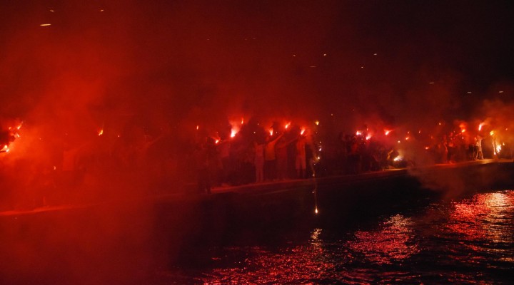 Mustafa Kemal Sahil Bulvar? Güzelyal? Sahili'nde toplanmaya ba?layan sar?-k?rm?z?l?lar, saat 21.15'i gösterdi?inde binlerce me?ale yakarak renkli görüntüler olu?turdu. Tezahüratlarla co?kulu bir atmosfer yaratan taraftarlar, me?ale ?ovun ard?ndan ???k gösterileriyle ve müzik gösterileriyle co?tu. Kutlamalar?n ard?ndan baz? taraftarlar Göztepe Gürsel Aksel Stad?’nda oynanacak olan Türkiye-Litvanya kar??la?mas?na geçerken baz?lar? da sahilde kutlamalara devam etti.