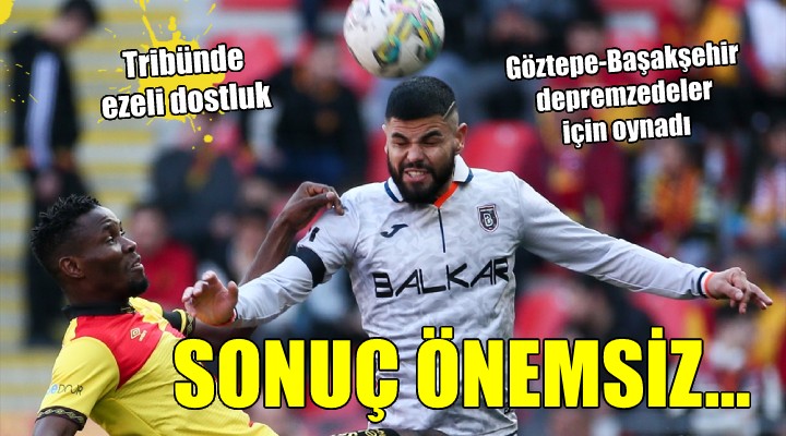 Maç?n hakemleri ve üzerinde Türkiye haritas? bulunan, "Türkiye tek yürek" yaz?l? ti?örtleri bulunan futbolcular müsabakaya "Yaralar?m?z? birlikte saraca??z" yaz?l? pankartla ç?kt?. Göztepe Teknik Sorumlusu ?akir Özkay?mo?lu ve Medipol Ba?ak?ehir Teknik Direktörü Emre Belözo?lu ile iki tak?m futbolcular? müsabakadan önce taraftarlar?n iste?iyle tribünleri selamlad?. Göztepeli taraftarlar, Emre Belözo?lu'na çiçek verdi. Maçta yakla??k 2 bin 500 ki?i tribünlerde yer al?rken, kar??la?may? az say?da Kar??yaka taraftar? da takip etti.