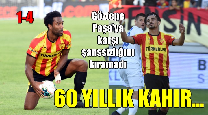 Abdullah ÇELEB?/SONKALE?ZM?R-Süper Lig'de 5 maçl?k yenilmezlik serisi geçen hafta Ba?ak?ehir deplasman?nda son bulan Göztepe, evinde Kas?mpa?a'ya 4-1 ma?lup olarak taraftar?n? kahretti. Göz-Göz, Süper Lig'de son olarak 17 Ekim 1959'da 4-1 ile ma?lup etti?i ve daha sonra oynanan 12 maçta 6 yenilgi, 6 beraberlik alabildi?i Kas?mpa?a'ya kar?? süren 60 y?ll?k ?anss?zl???n? yine k?ramad?.