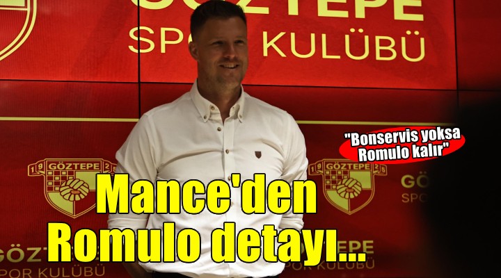 Romulo’nun transfer konusuna aç?kl?k getiren Mance, “Romulo için bütün olas?l?klar mevcuttur. Gerçekçi dü?ünürsek kendisi gösterdi?i performansla çok ilgi çekti. Çok büyük teklif de ald?k. Göztepe tarihinin aç?k ara en büyük transfer teklifi geldi. Bize istenilen bonservis bedeli verilmezse Romulo burada kalacak. Bizim istedi?imiz bonservis verilirse gider. Bizim belirledi?imiz bonservis olmad??? sürece Romulo Göztepe kal?r” cümlelerine yer verdi.
