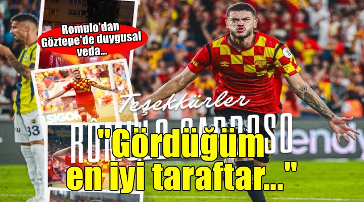 Romulo veda mesaj?nda, "Burada kariyerimin en iyi anlar?n? ya?ad?m, özgüvenimi buldum. E?im ve ben burada çok mutlu olduk. Çe?me'de ya??yorduk ve her?ey çok güzeldi. ?ehrin çok güzel oldu?unu dü?ünüyorum. Brezilya'dan farkl? olarak yeni bir kültür ama biz adapte olduk. ?zmir, Çe?me harika bir ?ehir. Umar?m bir gün tekrar dönebilirim. Taraftar?m?za te?ekkür etmem gerekiyor. ?lk maç?mdan itibaren bana, 'Çingenem' lakab?n? verdiler. Bundan dolay? çok mutluyum. Onlar?n sevgisini ve ilgisini kazanm?? olmak çok güzel. Emin olun ben de onlar? seviyorum. En ba??ndan beri verdikleri destek ve ilgi için herkese te?ekkür ederim. Hayat?mda Göztepe'ye olan tutkular? gibi bir?ey görmedim. Onlar stadyumda gördü?üm en iyi taraftar" ifadelerini kulland?.
