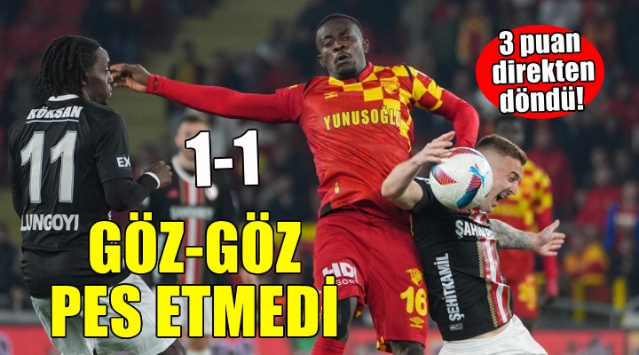 90+4’üncü dakikada Göztepe beraberli?i yakalad?. Sol kanattan Juan'?n ortas?nda Nielsen'in kale çizgisi önüne indirdi?i topu Kubilay Kanats?zku?, bo? a?larla bulu?turdu: 1-1.
