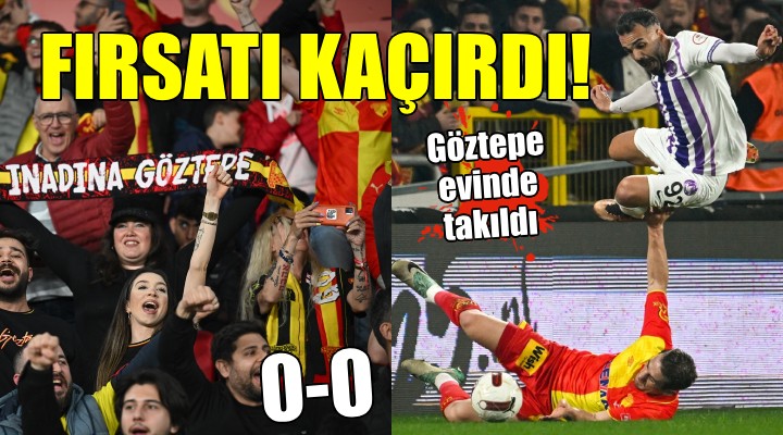 1'inci Lig'de direkt Süper Lig'e yükselme mücadelesi veren Göztepe, evinde Ankara Keçiörengücü ile golsüz berabere kald?. ?ki tak?m da girdikleri pozisyonlar? de?erlendiremedi ve maç ba?lad??? gibi sona erdi. ?zmir ekibi bu sonuçla 55 puana yükselirken; Ankara Keçiörengücü ise 31 puana ula?t?.