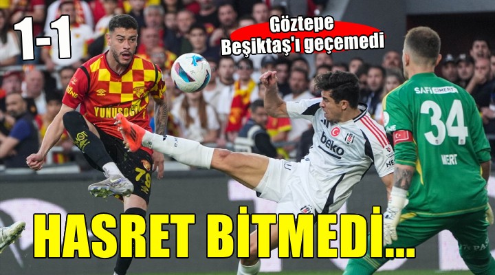 Süper Lig’de Avrupa kupalar?na gitmeyi hedefleyen Göztepe ve Be?ikta?’?n ?zmir’deki randevusunda kazanan ç?kmad?: 1-1. Gürsel Aksel Stad?’nda oynanan maça h?zl? ba?layan Be?ikta? 10’uncu dakikada Rafa Silva’n?n golüyle öne geçti ve ilk devreyi bu skorla galip tamamlad?. ?kinci yar?ya ise golle ba?layan Göztepe oldu. Kaptan ?smail Köyba?? klas bir golle dengeyi getirdi. Kalan dakikalarda sonuç de?i?medi, iki tak?m da hanelerine 1’er puan yazd?rd?. Galibiyet hasretini 11 maça ç?karan Göztepe 40 puana yükselirken, Be?ikta? da puan?n? 49’a ç?kard?.