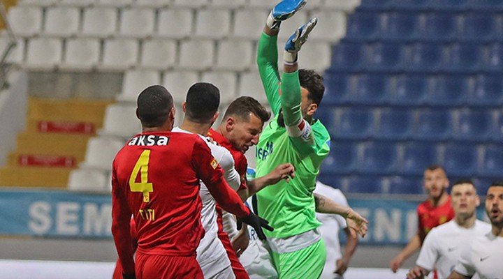 55’inci dakikada Kas?mpa?a’da Mame Thiam’?n ceza sahas? d???ndan yapt??? sert vuru? kalenin üstünden auta ç?kt?.