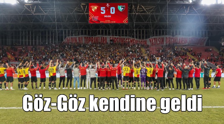 Daha önce 9 maçta 5 gol atabilen, ayn? say?da golü tek maçta a?lara gönderen Göztepe, puan?n? 14 yapt?. Cumhuriyet'in 99'uncu kurulu? y?l dönümünde oynanan maçta tak?mlar?n? yaln?z b?rakmayan Göztepeli taraftarlar müthi? bir görsel ?ölene imza att?. Cumhuriyet Bayram?'n? koreografilerle kutlayan futbolseverler, 5-0'l?k galibiyetin ard?ndan çifte bayram ya?ad?.