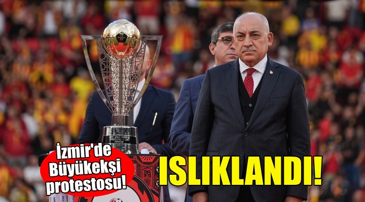 Taraftar? önünde büyük sevinç ya?ayan sar? k?rm?z?l?lar, düzenlenen törenle kupas?na kavu?tu. Kupay? teslim etmek üzere saha içine kurulan platforma gelen Türkiye Futbol Federasyonu Ba?kan? Mehmet Büyükek?i, Göztepe taraftar?n?n tepkisiyle kar??la?t?.