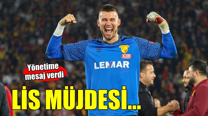 Bonservisi ?ngiltere ekibi Southamptan'da bulunan ancak transfer tekliflerinin fazla olmas? nedeniyle ?ngiliz kulübünün Göztepe'ye vermedi?i Lis, ?zmir'de kalmak istedi?ini belirtti. Bu hafta sonu ?zmir'e gelip Urla Adnan Süvari Tesisleri'nde teknik ekiple görü?en 27 ya??ndaki file bekçisinin, "Beni b?rakmay?n, burada devam etmek istiyorum" dedi?i ö?renildi.