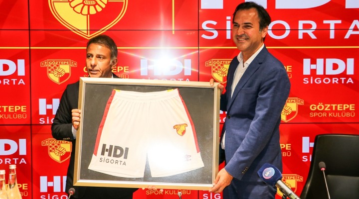 Göztepe Kulübü Üst Yöneticisi (CEO) Kerem Ertan ve HDI Sigorta Genel Müdürü Firuzan ??can, Gürsel Aksel Stadyumu'ndaki törende anla?may? imzalad?.