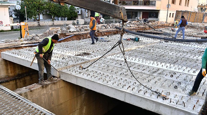 ?ZSU ekipleri Mithatpa?a Caddesi üzerinden Mustafa Kemal Sahil Bulvar?’na ç?k??taki 19/1 Sokak’ta çelik ?zgaralar? söktü. Hat üzerine prefabrik kiri?ler koyuldu ve betonarme imalat?na ba?land?. 95 metrelik çal??ma güzergah?n?n 48 metrelik bölüme beton döküldü.