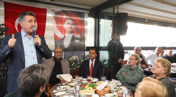 Bayrakl? Belediye Ba?kan? Serdar Sandal, Ha?im ??can Caddesi esnaf? ve apartman yöneticileriyle kahvalt?da bir araya geldi. Bayrakl?’y? dünya kenti haline getirmek istediklerini vurgulayan Ba?kan Sandal, bu amaçla hayata geçirecekleri projeleri anlatt?. Ba?kan Sandal, “Sosyal donat? alanlar?yla, kültür ve sanat etkinlikleriyle, caddeleri parklar?yla kafam?zda yeni bir kent var. Biz istiyoruz ki d??ar?dan bir vatanda? Bayrakl?’ya geldi?inde ?zmir’in kent merkezine geldi?ini anlas?n. Bayrakl?’y? gecekonduyla, çarp?k kentle?meyle de?il, modern, ça?da?, altyap?s? tamamlanm?? bir kent olarak bilsinler. Bu hedefe kilitlendik” diye konu?tu.