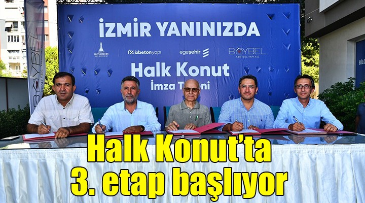 ?ZBETON, Ege ?ehir ve Baybel kentsel yap? i?birli?i ve kooperatifle?me yöntemi ile depremzedelerin evlerine daha uygun maliyetlerle kavu?mas?n?n önünü açan Halk Konut projesinde üçüncü etap imzalar? da düzenlenen törenle at?ld?. Bu kapsamda 30 Ekim ?zmir depreminde a??r hasar alan ve sonras?nda y?k?lan Dilber ile Çiçek Han?m Apartmanlar?n?n ard?ndan K?l?ç Apartman? sakinlerinin kurdu?u Halk Konut 3 Yap? Kooperatifi temsilcileriyle, ?zmir Büyük?ehir Belediyesi ?irketleri EGE?EH?R A? ve ?ZBETON A? ile Bayrakl? Belediyesi ?irketi BAYBEL A?'nin olu?turdu?u ortak giri?im yetkilileri aras?nda sözle?me imzaland?. ?zmir Büyük?ehir Belediye Ba?kan? Tunç Soyer öncülü?ünde Türkiye'de ilk kez uygulanan proje ile ?zmir Büyük?ehir Belediyesi ve Bayrakl? Belediyesi taraf?ndan depremzedelere yeni evlerinin in?as?nda belediye güvencesi ve teknik destek sa?lan?yor.