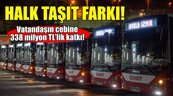 Her gün 05.00-07.00 ve 19.00-20.00 saatleri aras?nda geçerli olan Halk Ta??t uygulamas? sayesinde, ?zmirliler, tüm toplu ula??m araçlar?ndan yüzde 50 indirimli yararlan?yor. Kesintisiz devam eden Halk Ta??t uygulamas? sayesinde, Nisan 2019’dan bu yana vatanda?lar?n cebinde kalan toplam tasarruf tutar? yakla??k 338 milyon TL’yi buldu.
