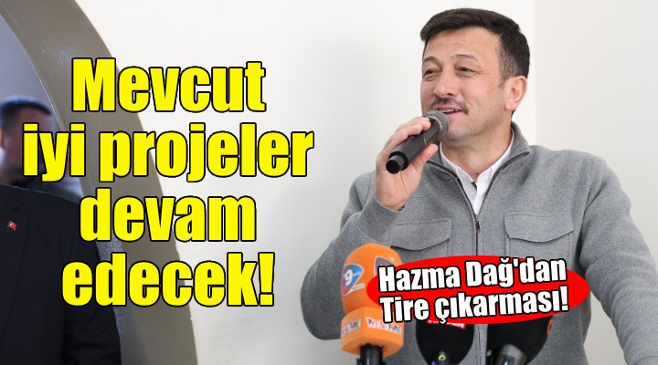 Hamza Da?, 1 Nisan sabah? ?zmir’in yönetiminde halk?n olaca??n? belirterek, projelerine de?indi. Da?, Tirelilerin en büyük talebi olan Belevi Yolu’nun ilk etab?n?n yüzde 90 tamamland???n? belirterek, kalan k?s?m ve di?er iki etab?n ilerleyen süreçte h?zla tamamlayacaklar?n? söyledi. Tire’ye otogar yapacaklar?n? da aç?klayan Da?, Ya?l? Bak?m Evi, Çocuk Hastanesi ve Di? Hastanesi müjdelerini de Tireli hem?ehrileriyle payla?t?.