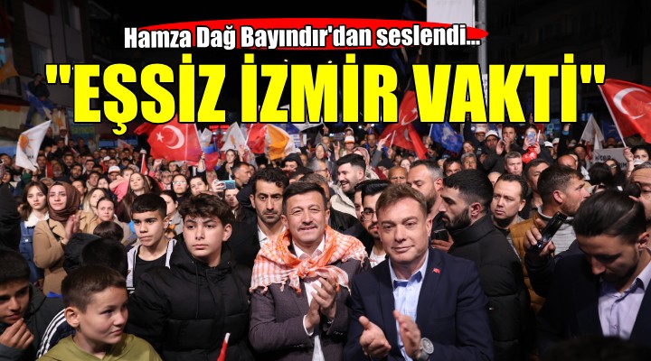 Binlerce Bay?nd?rl?n?n kat?ld??? mitingde Hamza Da?’a, MHP Genel Sekreter Yard?mc?s? ve ?zmir Milletvekili Tamer Osmana?ao?lu da e?lik etti. 31 Mart’ta hiç bir ?zmirlinin kaybetmeyece?ini vurgulayan Da?, “Biz kazanaca??z, ?zmir ve ?zmirli kazanacak. ?zmir, EGE’nin, Türkiye’nin lokomotifidir. O yüzden tüm vatanda?lar?m?za, ?zmirlilere bu meydandan sesleniyorum. Sand??a giderken ?zmir’i dünyan?n e?siz ?ehri yapmaya gidece?inizi unutmay?n. Hiç bir ?zmirli’yi ay?rmadan, ayr??t?rmadan hizmet etmek bizim boynumuzun borcudur. ?zmir’i birlik ve beraberlik ruhuyla yönetece?iz. ?zmir sizin, hepimizin. Ve ?zmir’in gelece?i, Türkiye’nin gelece?idir. O zaman ne yap?yoruz, 31 Mart’ta rekor kat?l?mla in?allah sand?klara ak?n ediyor muyuz? Vakit art?k E?siz ?zmir vaktidir diyoruz.” ifadelerini kulland?.