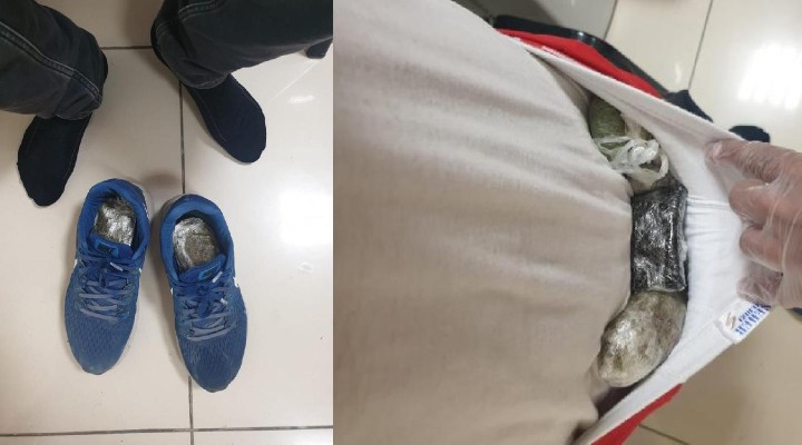Üst aramas?nda ?üphelinin vücuduna sar?l? 465,97 gram esrar ile 50,82 gram Afyon sak?z? olmak üzere toplam 516,79 gram uyu?turucu ele geçirildi.