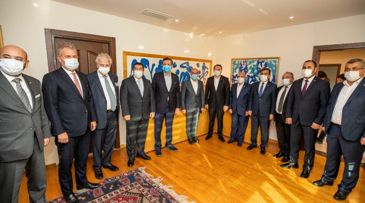 Türkiye Odalar ve Borsalar Birli?i (TOBB) Ba?kan? M. Rifat Hisarc?kl?o?lu, ?zmir Ticaret Odas? (?ZTO) Ba?kan? Mahmut Özgener, Ege Bölgesi Sanayi Odas? (EBSO) Ba?kan? Ender Yorganc?lar, Ege Bölgesi’nden oda ba?kanlar? ve baz? sendikalar?n ba?kanlar? ?zmir Büyük?ehir Belediye Ba?kan? Tunç Soyer’i ziyaret etti.