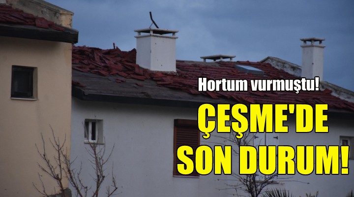 Çe?me'ye hasar tespiti için gelen Sigortac?l?k, Emeklilik Düzenleme ve Denetleme Kurumu (SEDDK) görevlileri, çal??malara ba?lad?. Hortum sonras? hasar tespitinde bulunan Niyazi Mert Selçuk, "Bölgede ya?ayanlar?n açt??? hasar tespit dosyalar? için bölgeye intikal ettik. Meydana gelen f?rt?nayla birlikte çat? örtüsü ve kaplamalar?n etrafa yay?ld???n?, uçan kiremit parçalar?n?n d?? cephelere sapland???n? tespit ettik. Sadece çat? hasar? de?il, hortumun etkisiyle d?? cephelerde de hasar olu?mu?. Vatanda?lar?n büyük ço?unlu?u ?u anda ?ehir d???nda oldu?u için evlerin içindeki hasar? göremiyoruz. Yazl?k konutlar olmas?ndan dolay? vatanda?lar burada yoklar. Bu yüzden tekrar hasar tespit çal??mas? yap?lacak. Ya???la birlikte konutlar?n da su almas?ndan dolay? hasarl? olma ihtimali yüksek" diye konu?tu.