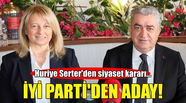 ?zmir'de i? ve sivil toplum dünyas?n?n yak?ndan tan?d??? isimlerden olan Huriye Serter siyasete at?lmaya karar verdi. Serter, ?Y? Parti taraf?ndan Konak Belediye Ba?kan Aday? olarak gösterilecek.
