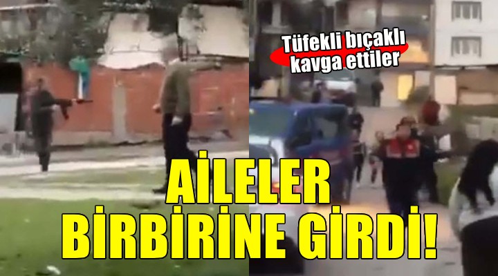 Olay, dün ö?le saatlerinde Kemalpa?a ilçesi Armutlu 85. Y?l Cumhuriyet Mahallesi'nde meydana geldi. Husumetli iki aile aras?nda ç?kan tart??ma, kavgaya dönü?tü. Kavga s?ras?nda F.T., elindeki tüfekle ate? açt?. O anlar cep telefonu kameras?na yans?rken, çevredekiler durumu jandarma ekiplerine bildirdi. ?hbarla olay yerine gelen jandarma ekipleri, kavgay? ay?rd?. B.T.'nin olay yerine getirdi?i b?çak ile av tüfe?ine el konuldu. Kolundan hafif yaralanan 1 ki?i Kemalpa?a Devlet Hastanesi'ne kald?r?l?rken, 14 ?üpheli gözalt?na al?nd?. ?üphelilerin jandarmadaki i?lemleri sürerken, yaral?n?n taburcu edildi?i ö?renildi