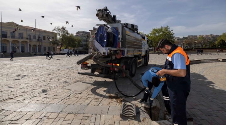Bayram temizli?ini kentin tüm noktalar?na yayan ?zmir Büyük?ehir Belediyesi ?ZSU Genel Müdürlü?ü, hem ?zmir’in önemli turizm destinasyonlar?nda hem de metropol ilçelerde temizlik çal??mas? yap?yor. Bu kapsamda ya?mur suyu ?zgaralar? ve ta?kan bacalar? ile kanalizasyon ve galeri mecra hatlar?, ekipler taraf?ndan gece gündüz temizleniyor. ?ZSU, ?zmirlilerin yan? s?ra kenti ziyaret edecek yerli ve yabanc? turistlerin de konforunu sa?lamak için yo?un çaba sarf ediyor.