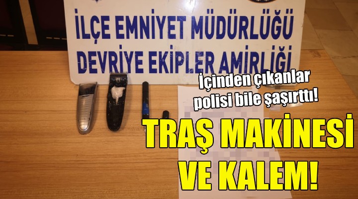 Polis ekipleri, kalemi ve t?ra? makinesini kontrol etti?inde ise büyük ?ok ya?ad?. T?ra? makinesi ve kalemin içerisinde 2.69 gram metamfetamin bulundu. Gözalt?na al?nan ?üpheli, sorgulanmak üzere emniyete götürüldü.