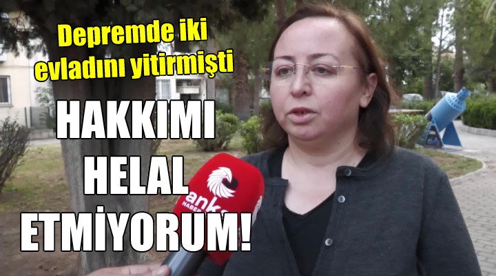 "Geçen hafta Anneler Günü'ydü. Kutlayacak annemiz ve yavrular?m?z yoktu. Sonra da bayram haftas?yd?. Önümüzdeki hafta 4,5 ya??ndaki k?z?m Lena'n?n do?um günü. Ac? ve zor süreçlerden geçiyoruz. Bu ac?lar?m?z? Çevre ve ?ehircilik Bakan? Murat Kurum ile say?n Erdo?an'a iletti?imizde anlay??la kar??lay?p deprem fark?ndal??? için ye?il alan yap?lmas? sözünü verdiler. Ancak ask?ya ç?kan projelerde ve bakanl?kla görü?tü?ümüzde verdikleri sözün yerine getirilmedi?ini gördük. ?kinci kez ac? ya?ad?k ve y?k?ld?k. Kimsenin hak kayb? ya?amas?n? istemiyoruz. Bir bina yap?lacaksa, önüne arkas?na yap?labilir. ?llaki o enkaz alan?na yap?lmas?na gerek yok. Oraya bina yap?lmas? ac?m?za ac? katacak. Murat Kurum ve Cumhurba?kan? Erdo?an'?n ?zmir'e ve biz ac?l? annelere verdi?i sözü tutmas?n? istiyoruz. Park karar?n?n engellenmesine, R?zabey'in y?k?m?ndaki ihmaller zincirine katk?s? bulunanlara iki evlad?n? kaybetmi? bir anne olarak hakk?m? helal etmiyorum. Oraya bina yap?p önüne de göstermelik bir an?t yapacaklar. Verilen sözler tutulmazsa da hakk?m? helal etmiyorum."