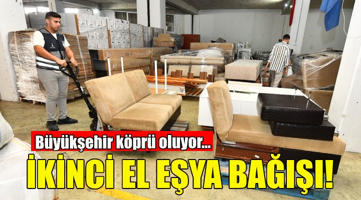 ?zmir Büyük?ehir Belediyesi, Türkiye’de büyüyen ekonomik kriz ve yoksulla?ma kar??s?nda dayan??ma projeleri de ba?lat?yor. ?zmir’de ikamet eden vatanda?lardan ikinci el e?ya ba???? alan Büyük?ehir Belediyesi, ihtiyaç sahiplerine o e?yalar? ula?t?rarak köprü vazifesi görüyor.
