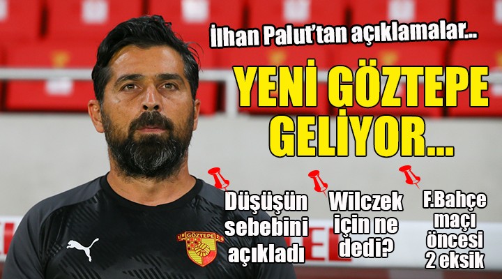 Yeni sezon öncesi çal??malar?n sürdü?ünü dile getiren Palut, "Mevcut oyuncularla ilgili fikrimizi payla?t?k yönetimle. Göztepe'nin yeni bir yap?lanma içerisine girmesi, gençle?me ad?mlar? atmas? gerekiyor. Bununla alakal? hem tak?mla hem de katk? yapabilecek oyuncularla ilgili çal??malar devam ediyor. ?unu net söylemeliyim, Göztepe yeni sezona belli oranda yenilenmi?, gençle?mi? ve daha büyük hedeflere gitme motivasyonuna sahip oyuncularla ba?lamay? dü?ünüyor. Belli oranda yeni bir sinerjiyle, daha çok isteyen, daha hedefe odakl? yeni bir Göztepe'ye herkesin ihtiyac? var" diye konu?tu.